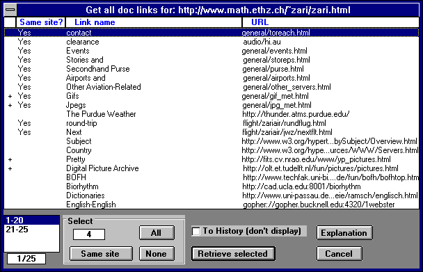 ...A list of all of the links inside this page appears: